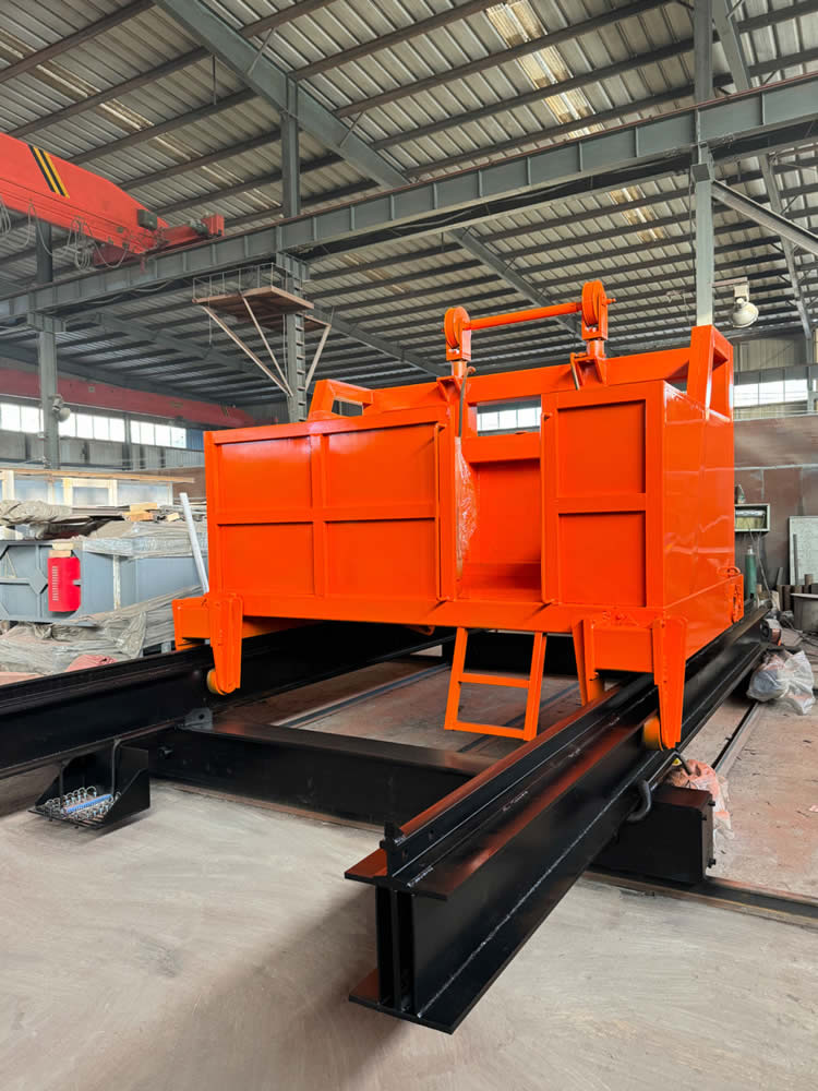 2、淬火裝爐:把料筐吊到裝料平臺上(只需要操作一次)——人工把工件裝入料筐(需方自備)后——按動放料按鈕——中轉車從裝料平臺上叉取料筐上升50mm——中轉車后退——中轉車移向淬火爐位置——淬火爐門開啟——中轉車把工件送入爐膛——中轉車自動退出——爐門關閉——加熱爐啟動加熱——裝爐工作完成。